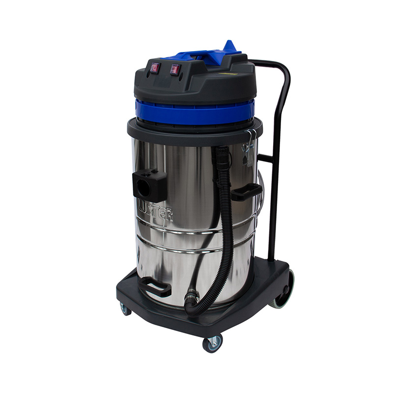 Máquina para aspirado de grandes superficies, con sus ruedas y carro permite un fácil traslado. Sus 2 motores le dan un poder exclusivo para aspirar rápidamente la suciedad de una superficie.